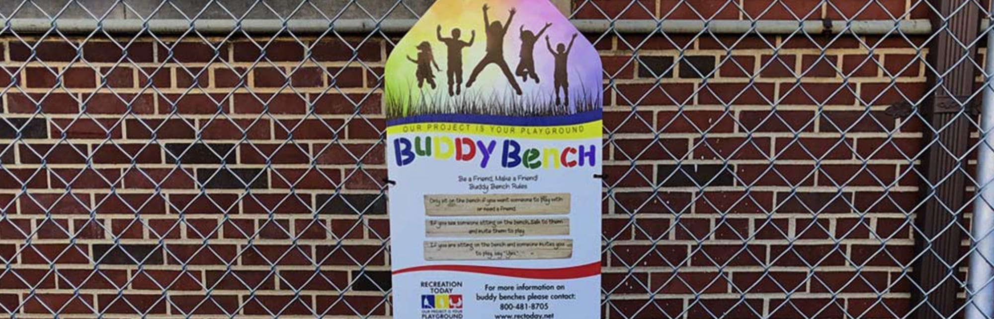 Recreation Today can provide you with a Buddy Bench Rules Sign to install beside your Buddy Bench. This sign provides information about your Buddy Bench and why you have provided the Buddy Bench for your organization.